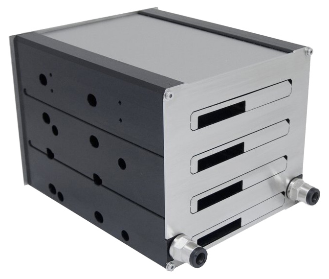 Das aquadrive X4 kann bis zu 4 (!) Festplatten in sich aufnehmen, die im komplett gekapselten Gehäuse bestens gekühlt und entkoppelt werden. Dabei werden lediglich drei 5 1/4" Schächte belegt und der Kühler beinhaltet gleichzeitig einen Ausgleichsbehälter, der ein größeres Fassungsvermögen als der aquatube besitzt.
