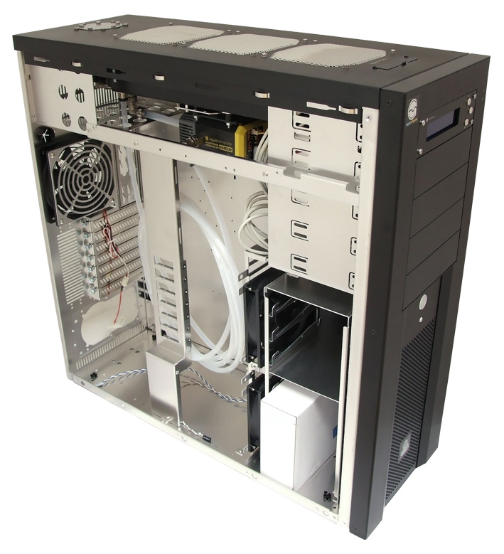 Das Wasser strömt - ähnlich wie bei einem Auto – an der Hitzequelle, dem heißen Prozessor vorbei und nimmt die entstandene Wärme auf. Anschließend wird die Wärme an einem großen Radiator wieder abgegeben. Dieser wird durch die entstehende Luftkonvektion genügend gekühlt, oder auch durch einen sehr langsam laufenden Lüfter. Für die Zirkulation des Wasser sorgt eine kleine Pumpe, die ebenfalls praktisch geräuschlos läuft. Anschließend fließt das Wasser wieder zum Prozessor zurück.